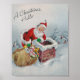 Vintage scene of Santa and his bag of toys on a rooftop ready to go down the chimney...text reads A Christmas Hello poster.