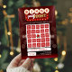 The front features a bold Bingo Party Night design with rich holiday reds and sparkling lights, while the back includes easy “How to Play” instructions for a lively round of Find Somebody Who… holiday bingo. Guests will mingle, match categories, and race to get five in a row—mark your spots, shout “Bingo!” and jingle all the way!