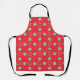 Great color and even though I ordered the kid size, it covers well enough to use during the holidays. I am not a big woman and prefer a shorter apron. I stand 5"6" and the length of the garment goes to mid-thigh. The tie straps fit well at my waist and even though there is no neck strap adjustment, the opening is plenty big enough. I am happy with the size and fit. I am sharing my apron with my 10 year old grandson, too! The color is vibrant and looks good, as shown on the website. The stitching looks strong and reinforced. Photographed is front side and back side of the apron, reinforced straps and coloring. My phone camera may not be the best at showing the details.