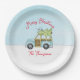 The wood-sided car heading home from the Christmas tree lot. This design features Christmas holiday fun funny cute, festive Christmas tree car snow, snowing winter car cartoon artwork, simple minimalist minimal design, whimsical typography text font, trendy stylish calligraphy script, Christmas holiday party paper plate, Christmas holiday party supplies, blue white snowflakes snowing, merry Christmas saying quote greeting