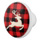 Christmas Holiday Deer Antlers Red Black Gingham Ceramic Knob