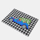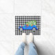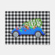 This Christmas holiday doormat is shown with a country style black and white gingham plaid print with a festive car art print.