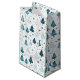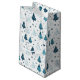 This Christmas holiday gift bag is shown in a festive winter trees print.