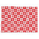 This Christmas holiday gift bag is shown in a red and white holiday winter snowflakes print.