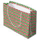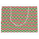 This Christmas holiday gift bag is shown in a festive holiday colors zig zag print.