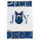 This large size gift bag is shown in a fanciful bold golden colored swirls and stars borders with a cute ornament with a bow in blue. Shown in Sapphire Blue and gold-tone over white background.