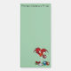 Wow. I just received my first order of these notepads and I am super impressed with the very high quality of the printing and materials, the very substantial overall size and weight and the fact that the magnet on the back is huge! Very nice product... Will order more styles right away! Perfect clarity and bright, true colors on my cartoon art.