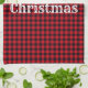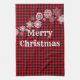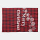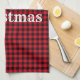 This kitchen towel is shown in a cute festive Christmas holiday snowflakes and a black and red buffalo plaid print design.