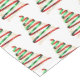Holiday table runner is shown with a festive ribbon tree print.