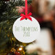 Cute Merry Mistletoe Holiday Christmas Photo Ornament. Personalized with a custom name. A trendy cute holiday Christmas gift. A wonderful way to celebrate the holidays. This design features Christmas holiday merry cute mistletoe, modern elegant green, and red, photo simple minimalist basic, classic traditional holiday greenery, botanical green leaves foliage, with watercolor red ribbon, modern and minimal holiday, artwork by laura Lacina, a holiday Christmas photo ornament, cute calligraphy script typography font