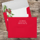 This elegant red 5x7 envelope matches our Mistletoe Holiday Christmas Photo Cards. This design features Christmas holiday merry mistletoe, watercolor red and green, elegant whimsical holiday 5x7 a7, holiday Christmas greeting card envelope, holiday party invitation envelope, botanical greenery green leaves foliage, watercolor red ribbon, back flap return address, classic basic traditional envelope, artwork by laura lacina