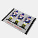 3 holiday Christmas nutcrackers are featured standing in a row. The soldiers have white hair and mustaches, are wearing blue hats and jackets, and black boots, and holding a gray sword. On a light gray background, to hide dirt, or customize and change to white, a darker gray, or any color. Season's Greeting is in red below, or change to Merry Christmas, Happy Holidays, or your family name, The Johnson's, for example.