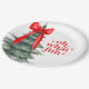 Christmas holiday party plates with Christmas tree and red bow. Oh what fun!