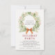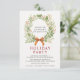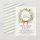 A hand-painted watercolor wreath of winter greenery and berries encircles a warm red bow, creating a festive yet elegant design perfect for your holiday gathering.