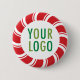 Personalize this custom pinback button pin with your own company logo and custom text. It features a bold peppermint candy cane style design by MISOOK for some Christmas holiday cheer. Custom logo buttons can advertise your business as trade show giveaways and corporate gifts. Available in multiple sizes from small 1.25 inch to colossal 6 inch. No minimum order quantity and no setup fee.