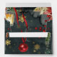 A luxurious and festive Christmas holiday mailing envelope printed on all sides including the inside. The design features a dark green forest winter's night background with shimmery gold snowflakes, watercolor-painted poinsettias, pine cones and red berries with a warm lit lantern and a shining red ball ornament on red ribbon falling in mid-air. The back flap of the envelope has your return address and the inside opens to beautifully matched graphics. This elegant and posh envelope will become a keepsake for family and friends who are lucky enough to receive their cards in it for the holidays. Matching greeting cards and invitations can be viewed in the Christmas Holiday Splendour collection.