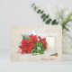 Poinsettia bouquet and wedding rings with candle and Holy Bible in elegant mask frame for holiday wedding RSVP.
