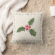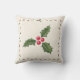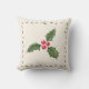 Christmas throw pillow with hand-drawn illustration of holly berries on red, green and cream. A great accessory for your Holiday season home decor.