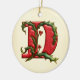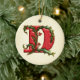 Christmas Holly Monogram D Ceramic Ornament