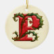 Christmas Holly Monogram P Ceramic Ornament