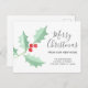 It is decorated with watercolor holly and berries in shades of red and green, and says "Merry Christmas From Our New Home."