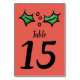 Christmas Holly Wedding Table Number