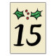 A Christmas holly wedding table number by Helen McCartney Designs.