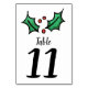 A Christmas holly wedding table number by Helen McCartney Designs.