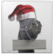 cute farm horse wearing a Santa Hat