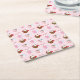 This cute coaster is versatile and can be used for giving gifts or art and craft projects. The design features hot cocoa chocolate drinks on a pink background.