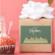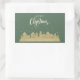 Christmas House Green Retro | Real Estate Custom Modern Rectangular Sticker. Show your clients how much you appreciate them this Christmas season with this silhouette winter houses with a starry sky design. Perfect for real estate company/business looking to strengthen relationships and express gratitude to their clients as a label for gift/parcel or as an envelope seal. Make this holiday season memorable for your clients and keep your name top-of-mind with elegant designed stickers that shows you care. The text on the sticker can be personalized to your own message, name, company name or contact. Order yours today and spread the beauty and joy of Christmas throughout the New Year!