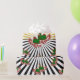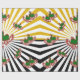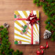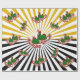 This image is a set of ice skates in Christmas colors of red, green and white. A black and gold arrow with glitter was added to this design. This gift wrap is available in assorted styles, and sizes.