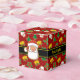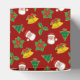 Set of christmas icons. Santas head, christmas tree, bells, christmas holly, and poinsettia. Custom background color. Seamless pattern. Custom text.