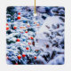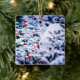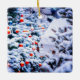 Sparrows and a pigeon by the bird feeder in wintertime. Snow-covered Christmas trees decorated with red, blue balls around. Christmas idyll. One-of-a-kind, unique square ornament. You can transfer this design to a large variety of other products, just choose a product from a line hereinunder. Use the Customize button and fit/fill option to adjust the image to the product if needed. Just buy one, have fun and be happy!
