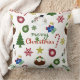 Christmas Illustration Mix Lg Pattern Throw Pillow