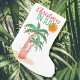 It is decorated with watercolor palm trees decorated like Christmas trees and a sun.