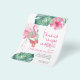 Celebrate the season with this Christmas in July flyer—a fun and festive way to invite guests to your tropical-themed summer party! This watercolor pink flamingo design is paired with monstera palm leaves and the playful phrase “Fa-la-la-la-la-la-la-mingle” in hand-lettered typography, bringing a whimsical twist to your Christmas in July events.