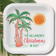 Invite family and friends to your Christmas-themed celebration and decorate it with these island-style square paper plates featuring hand-drawn palm trees decorated with lights.
