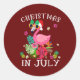 Christmas In July Pink Flamingo Hawaii Funny Classic Round Sticker