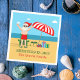 This cute custom Christmas in July napkin makes perfect summer party decor for a beach bash or pool gathering. Make it a fun north pole themed extravaganza with Santa Claus in his swimming trunks next to a red and white striped beach umbrella and gifts. I've never seen Mr. Klaus in a bathing suit before! The green text ties together the fun Xmas theme.