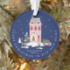 The Perfect ornament keepsake for new couples, newlyweds, and families celebrating their first Christmas in their new home. Our vintage holiday design features a fun vintage town scenery and landscape. Every little detail is captured in this quaint little neighborhood. Features Pink houses decked out in festive decorations, pink snow covered trees, festive showman, lamp post, children singing and throwing snowballs. A pink vintage van carrying a Christmas trees to display in their homes. The reverse side features a complementing town scenery pattern. All artwork contained in this girly vintage Christmas town & vintage van ornament is hand-drawn original artwork by Moodthology Papery.