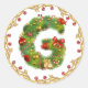 christmas initial G monogram sticker. This exquisite letter G xmas sticker will give your xmas a traditional touch with a modern personalized feel. Designed to look like a fir tree covered with presents and gifts this letter a on a circular sticker is surounded by a gold frame with red berries. Upmarket and on trend this is an affordable luxury for you holiday decor needs. With this green and red image on a snowy white background you will be bound to make an impact. Good for business use also. Full alphabet available.