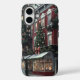 This is a Christmas iPhone 16 Case. The Christmas design was made with generative art. The art features a digital painting of a city scene during the Christmas holidays. You can add a name with the Personalize button.