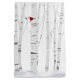 Irish setter dog wearing a Santa Claus hat in snowflakes and birch trees.