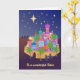 A joyful Christmas card for a Tutor, with a starry sky, the three wise men on their camels in the distance, and Joseph, Mary and a donkey making their way into the brightly colored little town of Bethlehem. The lettering, Christmas Joy, and stars are in gold-effect paint (not gold foil). A mixed-media design by Judy Adamson.
