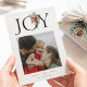 Christmas Joy Greenery Swag Red Bow Holiday Photo Card