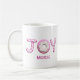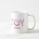 Find the word joy spelled out of pink candy canes on this simply delicious Christmas coffee mug. You can easily add personalization for a unique touch, and create a great holiday for the your loved ones.