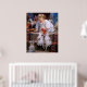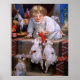 Decorate your wall with a charming vintage Christmas poster featuring a little girl sharing her stocking with three cute puppies.