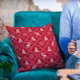 Christmas Knit Moose Tree Red Winter Holidays Throw Pillow