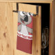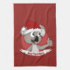 Customizable Kitchen Towel with illustration of a head of cute little koala with Santa's hat; great decoration for Christmas holidays, editable template design with custom field for your own text, illustrated by Radka Kavalcova